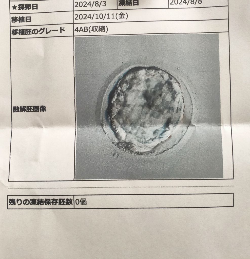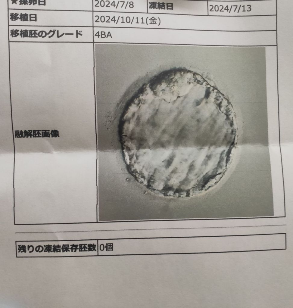 胚盤胞移植は大体24時間以内に着床するらしいけど、ちょうど明日から連休を使って実家に帰ります🫡